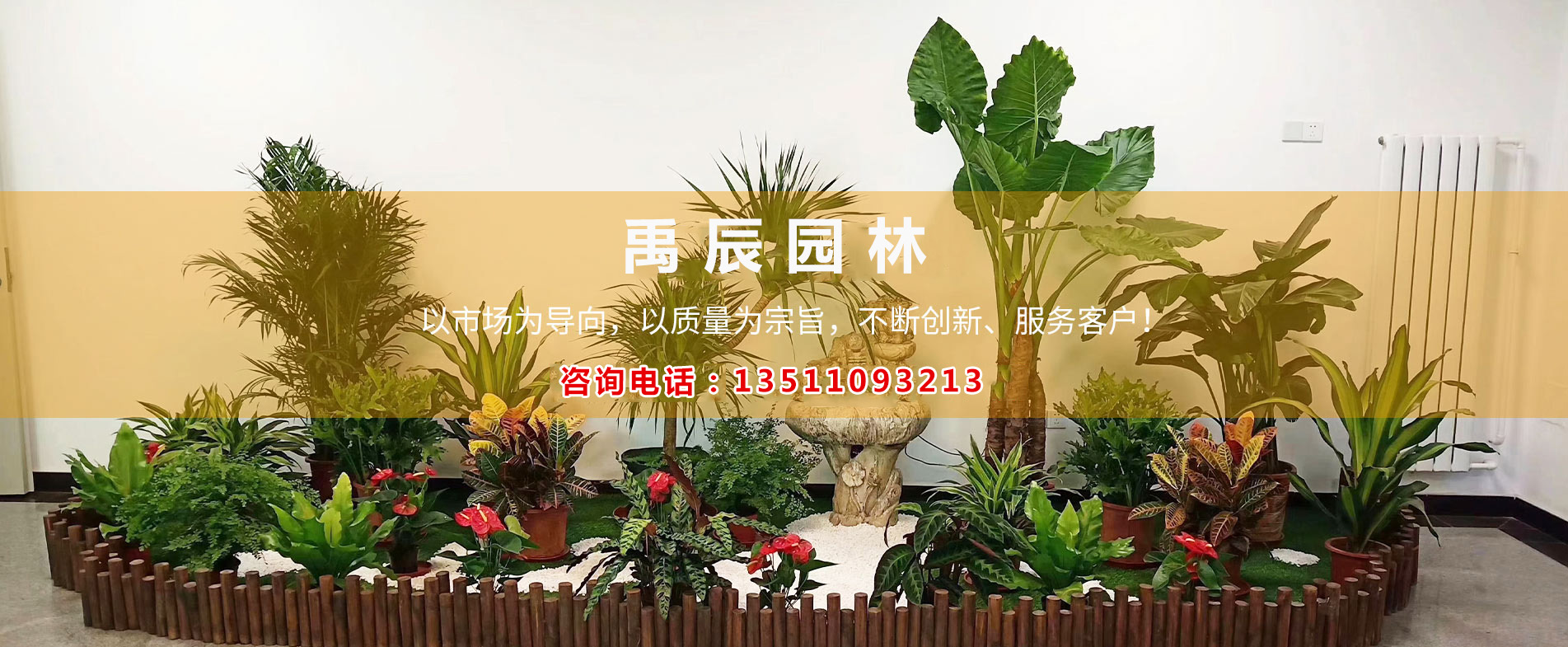 北京禹辰园林绿化工程有限公司是一家园林绿化景观设计、绿植租摆与销售、绿地养护、鲜花、花坛、园林绿化种苗生产为一体的综合性服务网站。      公司秉承“专业精神、品质至上、严格管理、服务至上”立足于北京市场,公司实行现代化管理模式,公司机构健全,管理制度完善,服务质量优良,公司下设:市场营销部、养护部、设计部、综合部等职能机构。公司拥有一批优良的园艺师和设计师,专业、敬业、乐业的员工队伍,为您提供真诚、细致的绿化服务。北京禹辰园林绿化工程有限公司愿为您真诚服务,您将置身于绿色、自然的氛围中。      公司服务宗旨:追求创新、提高品质、用爱体会、用心服务。    &nbs···...